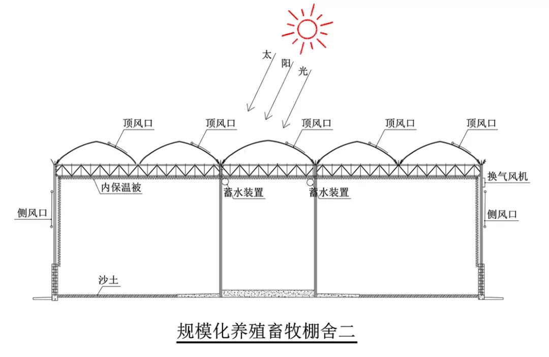 進(jìn)行畜牧養(yǎng)殖的溫室稱(chēng)為畜牧養(yǎng)殖溫室。配備智能控制系統(tǒng)的畜牧棚舍稱(chēng)為智能保溫陽(yáng)光畜牧棚舍。棚舍(內(nèi)蒙古畜牧棚舍)整體采用鋼架結(jié)構(gòu),輕便耐用;四周及頂部薄膜覆蓋;后墻及頂部后坡整體覆蓋毛氈型保溫被;頂部及四周設(shè)置通風(fēng)口;棚舍內(nèi)部在頂部及四周有保溫被;桁架上方設(shè)置接滴露薄膜及導(dǎo)流槽;內(nèi)部設(shè)置一地下水池,供牛羊飲水。為節(jié)約投資可連棟使用。特別適用于大型畜牧養(yǎng)殖企業(yè),單棟適用于大跨度不同禽類(lèi)的單獨(dú)養(yǎng)殖。