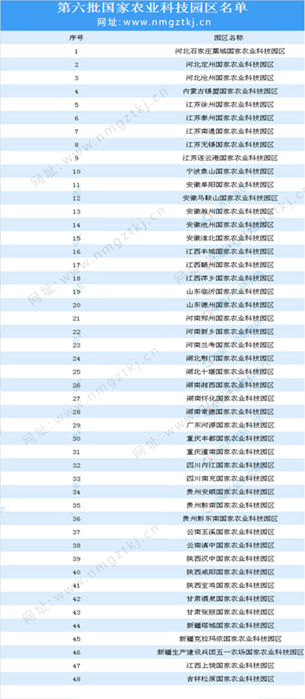 截止目前,我國已公布了8批國家農(nóng)業(yè)科技園區(qū)名單,園區(qū)累計達到200多個,以下是1-8批國家農(nóng)業(yè)科技園區(qū)名單匯總一覽: