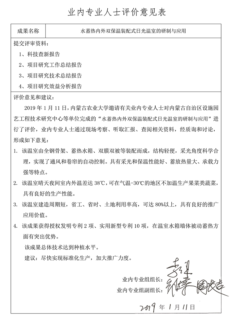 研討會期間,100多位行業(yè)同仁就內(nèi)蒙古中天科技有限公司設計建設的水蓄熱內(nèi)外雙保溫裝配式日光溫室進行了實地考察與交流研討,一致認為成果總體技術已具備良好的推廣價值。內(nèi)蒙古農(nóng)牧頻道、包頭新聞等媒體進行了大量報道。