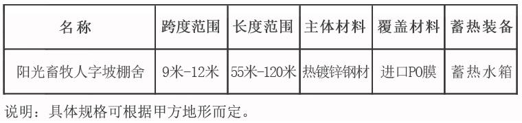 陽光畜牧人字坡棚舍配套設(shè)備包括:基礎(chǔ)、骨架系統(tǒng)、內(nèi)保溫系統(tǒng)、立面放風系統(tǒng)、換氣系統(tǒng)、熱飲水系統(tǒng)、配電柜、覆蓋系統(tǒng)(東西墻、后坡、前坡等)等。
